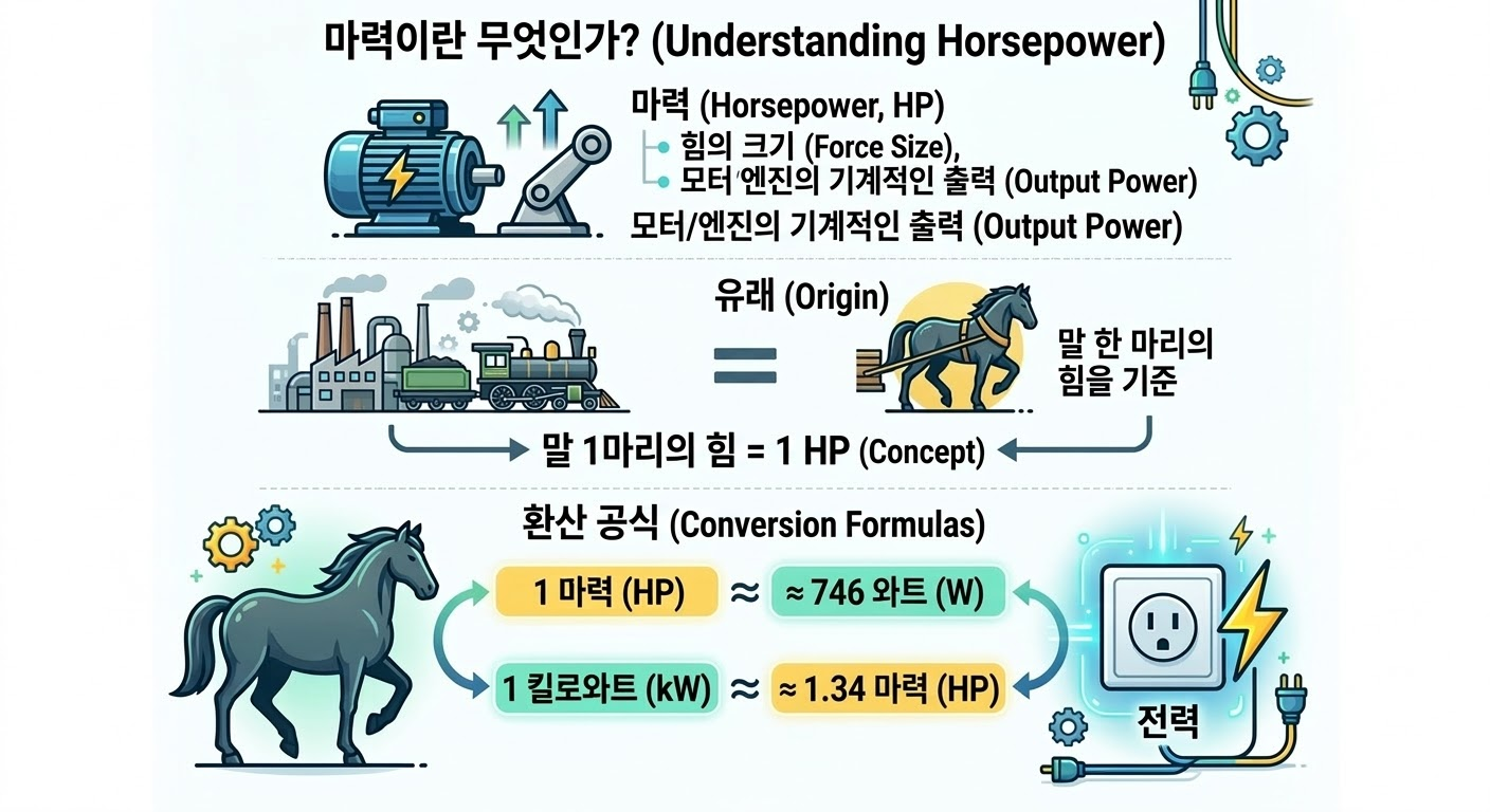 이번 글에서는 마력과 소비전력의 차이, 왜 헷갈리는지, 실제 산업 장비에서는 어떻게 계산하는지까지 쉽게 정리해 보겠습니다.