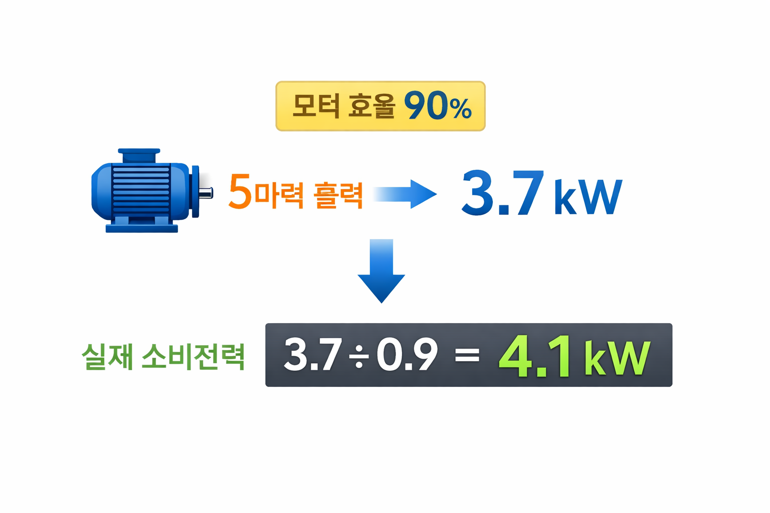 산업 현장에서 모터 전력을 계산할 때는 모터 효율을 반드시 고려해야 합니다.
